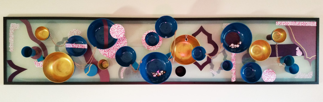 Sculpture- Be Jeweled Contemporary, Murals & Decor Design Mixed media Sculpture: Painted objects, paper and paint on glass. Approximate size: 18×72″ Original available for sale. Great over a headboard or other long wall. Skills Posted on April 21, 2016 ← Painting-Edge Of Lumahai Folder – Polk Cath. Schools →